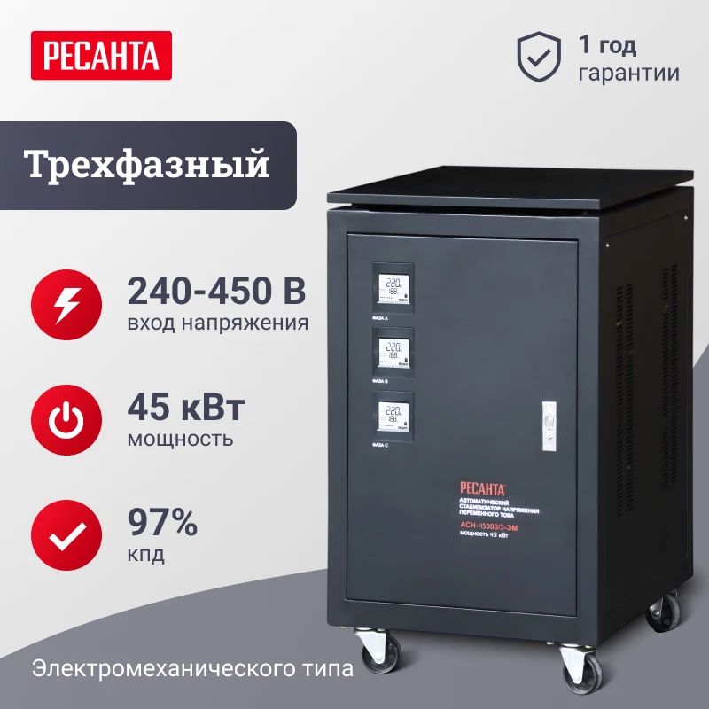 Особенности трехфазного стабилизатора РЕСАНТА АСН-45000/3-ЭМ
