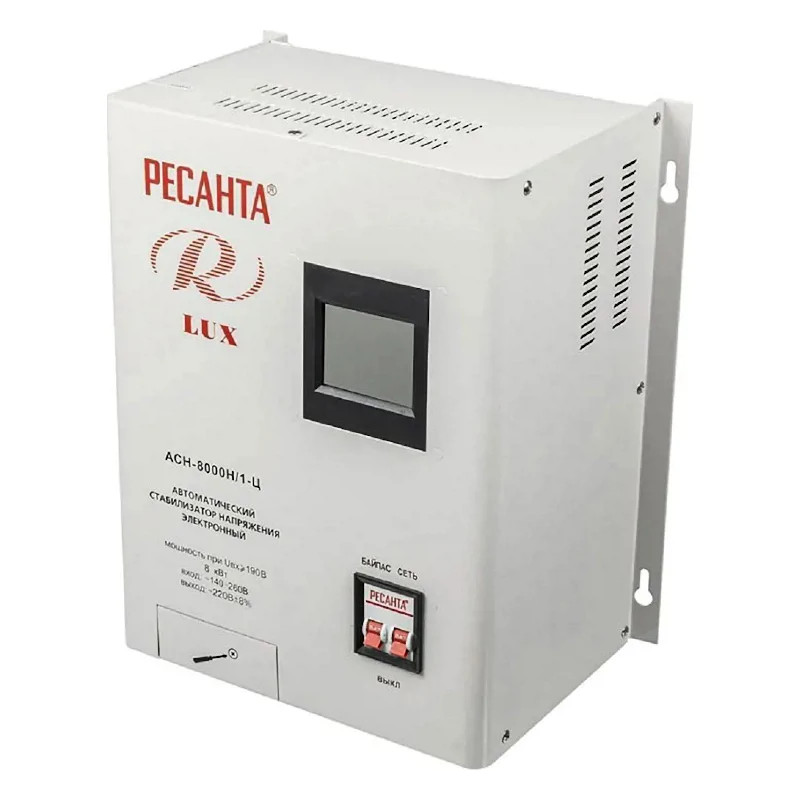 Особенности однофазного цифрового настенного стабилизатора напряжения серии LUX РЕСАНТА АСН-8000Н/1-Ц
