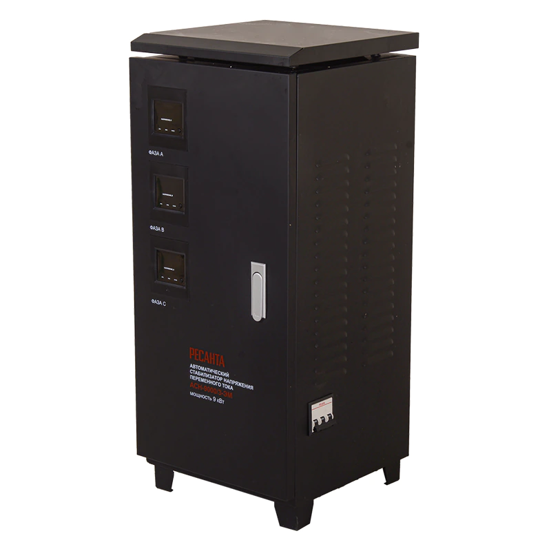 - Трехфазный стабилизатор электромеханического типа РЕСАНТА АСН-9000/3-ЭМ