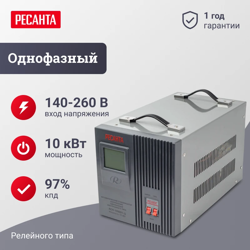 - Однофазный стабилизатор напряжения электронного типа РЕСАНТА АСН-10000/1-Ц