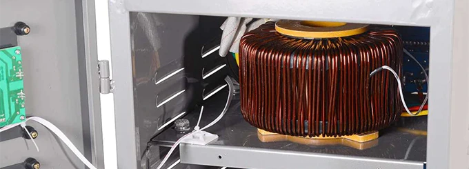 Стабилизатор работает по релейному принципу: автоматика анализирует входное напряжение и при отклонениях от нормы переключает обмотки автотрансформатора через мощные реле. Это обеспечивает ступенчатую коррекцию напряжения с сохранением стабильных выходных параметров. Стабилизация происходит мгновенно, за сотые доли секунды. Уровень КПД трехфазного стабилизатора напряжения РЕСАНТА составляет 97%.