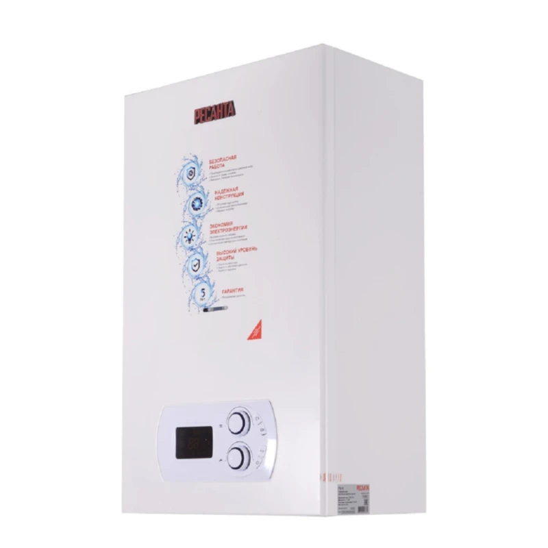 Устройство оснащено современной электронной панелью управления, которая регулирует рабочие процессы и сигнализирует о возможных неполадках, а класс защиты IPX4 позволяет устанавливать котёл в помещениях с повышенной влажностью.