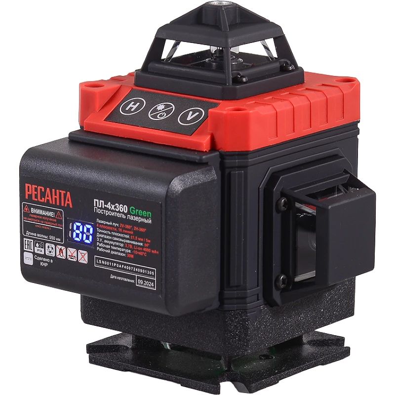 Построитель плоскостей лазерный ПЛ-4Х360ШС Green Ресанта - эффективный инструмент для быстрой и точной разметки пространственных зон при проведении строительных и ремонтных работ. Отличительной чертой данной модели является формирование сразу двух пересекающихся горизонтальных линий на 360°, что позволяет создать единую опорную сетку для разметки помещения.